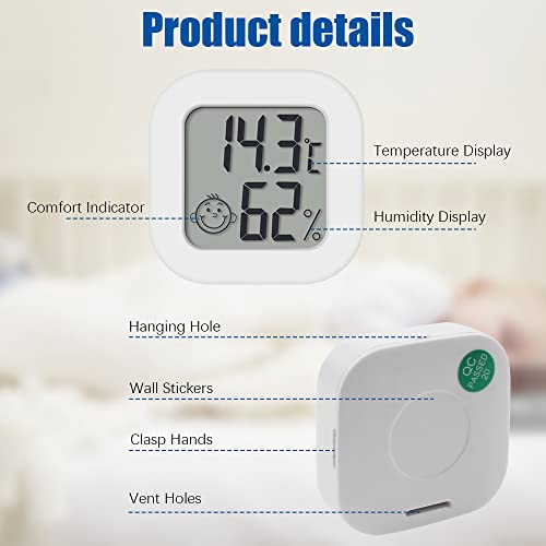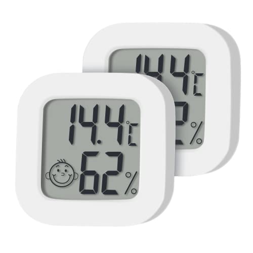 2 Pack Indoor Mini Thermometer Digitale Hygrometer meter Meter, Draagbare Temperatuur en Vochtigheid Monitor voor Tuin, Thuis, Kantoor (Batterij inbegrepen) (Wit)