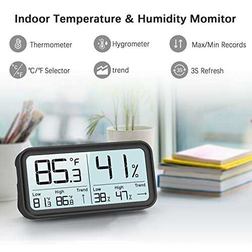 BFOUR Digitale hygro-thermometer, binnenthermometer, hygrometer, temperatuur-vochtigheidsmeter, luchtbewaking voor kamers, klimaatcontrolemonitor, zwart