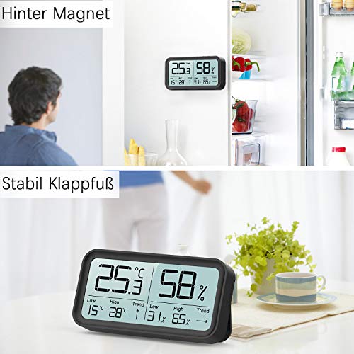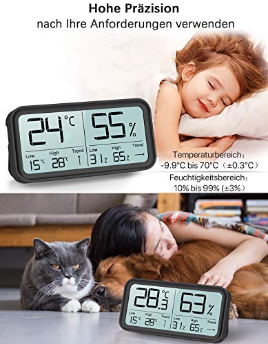Gemakkelijk leesbare gegevens: gebruik een HD FSTN-scherm dat duidelijk afleesbaar is vanaf elke afstand in de kamer. Het meetscherm is groter dan bij andere, het achterscherm van de hygrothermometer biedt volledig zicht en een hoog contrast, zodat je hem vanuit elke hoek super helder kunt zien. Geschikt voor babykamer, slaapzaal, slaapkamer of wijnkelder. Ons octrooirecht voor een duidelijkere weergave. Hoge kwaliteit, zodat je onze hygrometer vele jaren lang kunt behouden.