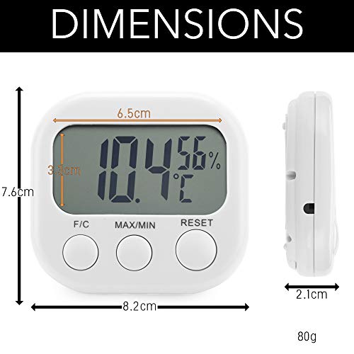 ✅ Draagbaar en mini-formaat: zoek je een mini-hygrometer voor binnen, die geen ruimte inneemt en gemakkelijk van kamer naar kamer of zelfs op vakantie wordt vervoerd? Ben je op zoek naar een supereenvoudige thermometer? De thermo-hygrometer van Takit meet 76 x 82 x 21 mm, 80 g. Het voldoet niet alleen aan de dagelijkse behoeften, maar neemt ook niet veel ruimte in. Het is het ideale gereedschap voor reizen of binnenshuis (kantoor, slaapkamer, woonkamer, veranda enz.).