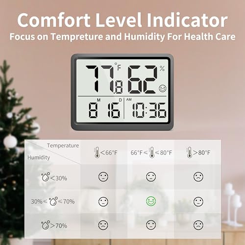 DOOMAY Digitale thermometer Indoor Hygrometer: Vochtigheidsmeter met grote LCD-cijfers, kleine gekalibreerde temperatuurmonitor met tijddatum voor thuis Babykamer Garage Wijnkelder (zwart)