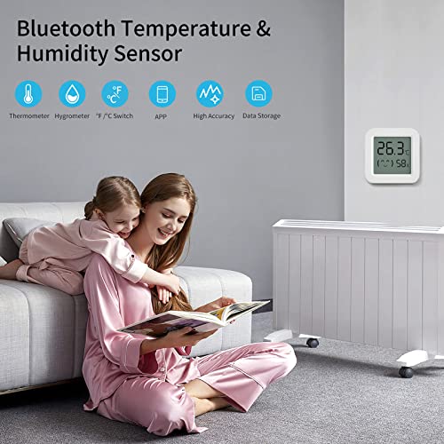 【Hoger nauwkeurig en snel】Bluetooth Mini Temperatuursensor -20℃~60℃ en vochtigheidssensor 0% RH ~ 100% RH. De temperatuur is nauwkeurig aan ±1℃, en de vochtigheid is ±5%RH. De weergavegegevens van de temperatuursensor worden eens in de twee minuten vernieuwd en de APP registreert gegevens eenmaal per uur.
