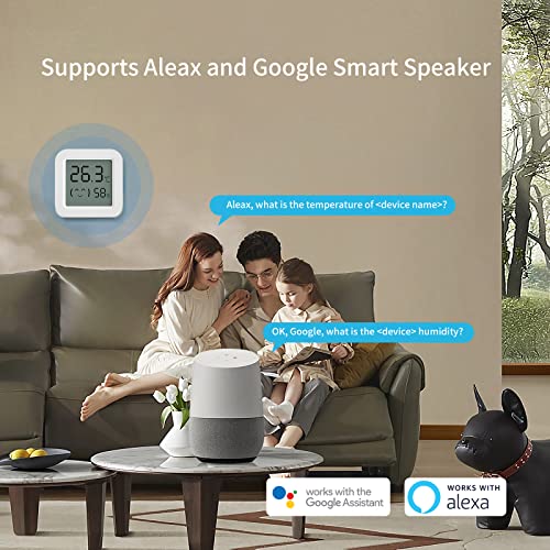 【Voice Control & Share-apparaten van derden】 U kunt de omgevingstemperatuur en vochtigheid opvragen via Alexa, Google Assistant slimme sprekersdialoog. Bijvoorbeeld “Alexa, wat is de temperatuur van de ”apparaatnaam”.Apparaatdelen met één klik met familieleden.