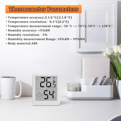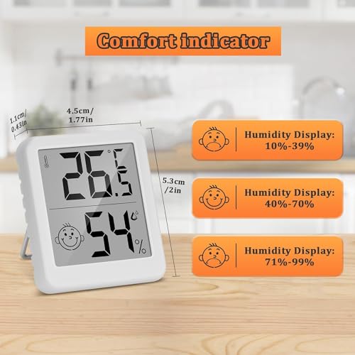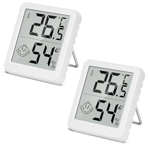 PAIRIER Luchtvochtigheidsmeter, thermometer voor binnen, 2 stuks, digitale mini-lcd-thermometer, hygrometer met smiley-indicator, gauge voor babykamer, seniorenkamer, werkkamer, wijnkelder enz