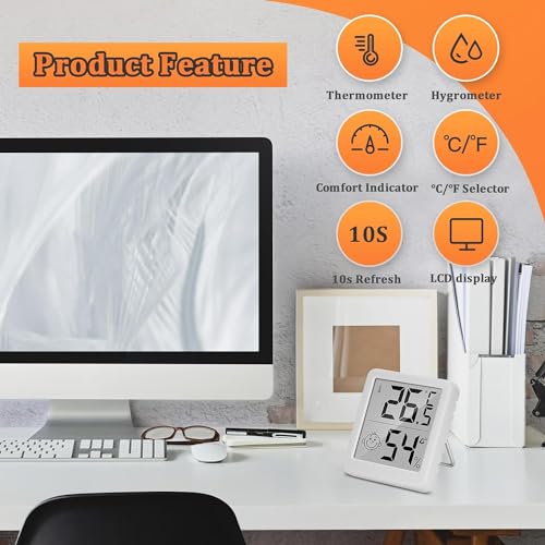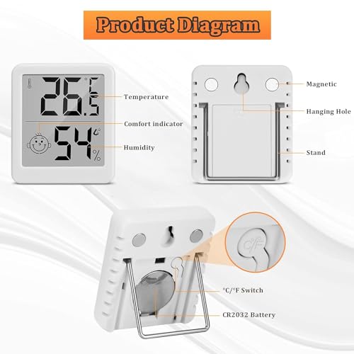 Luchtvochtigheids- en temperatuurbewaking: deze draagbare thermometer/hygrometer meet de luchtvochtigheid en temperatuur in binnenruimtes en helpt je om de omstandigheden in de ruimte te kennen. Word de ideale keuze voor je persoonlijke en professionele leven.