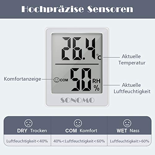 SONOMO Thermo-hygrometer, set van 3 hygrometer, voor binnen, thermometer, digitale kamerthermometer, luchtvochtigheidsmeter voor binnen, woonkamer, babykamer, kantoor (wit)