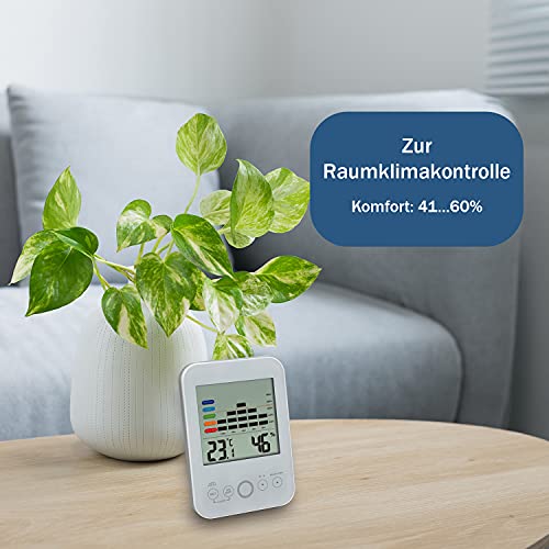 Woonklimaat: thuis goed voelen dankzij bewaking van de luchtvochtigheid en binnentemperatuur, optimale kamertemperatuur: 18 – 22 °C; optimale luchtvochtigheid: 40% 60%