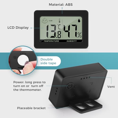 Eenvoudig te installeren: je kunt de thermo-hygrometer direct op het bureau verticaal plaatsen, of kantel hem op het nachtkastje door de houder, of plak hem op de koelkast door dubbelzijdig plakband.