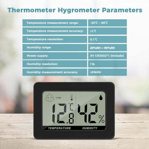 Thlevel Hygrometer, thermometer, thermo-hygrometer, indoortemperatuur, luchtvochtigheid, meetinstrument, digitaal mini-lcd voor kantoor, woonkamer, broeikas en koelkast
